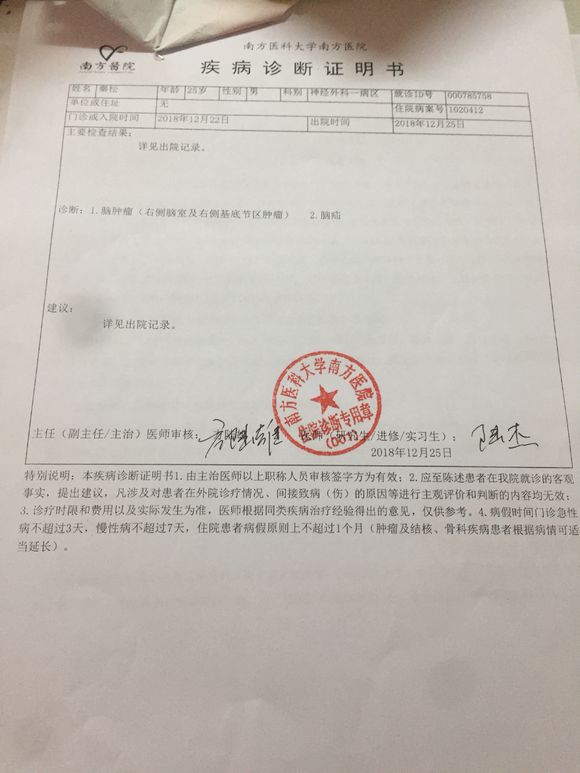 我弟弟也是得了脑肿瘤。天都要塌下来了。。。
